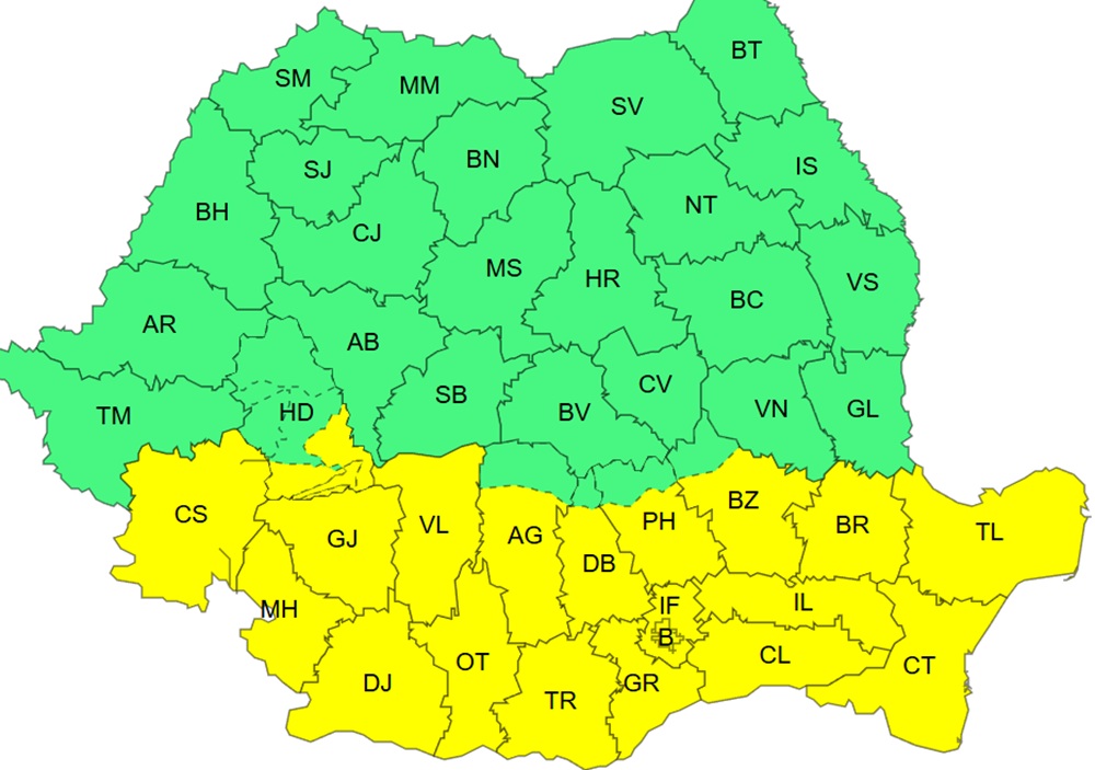 Acesta este completat cu un cod galben care vizează jumătatea sudică a țării, alertă valabilă în perioada 24 decembrie, ora 12.00 - 25 decembrie, ora 20.00.