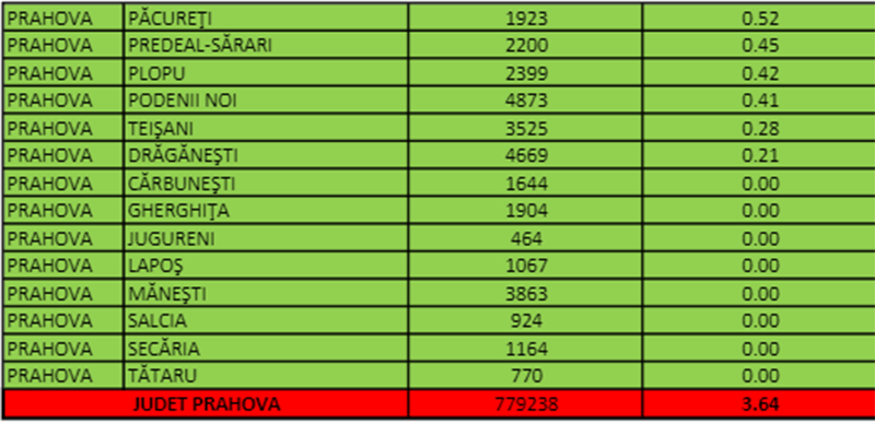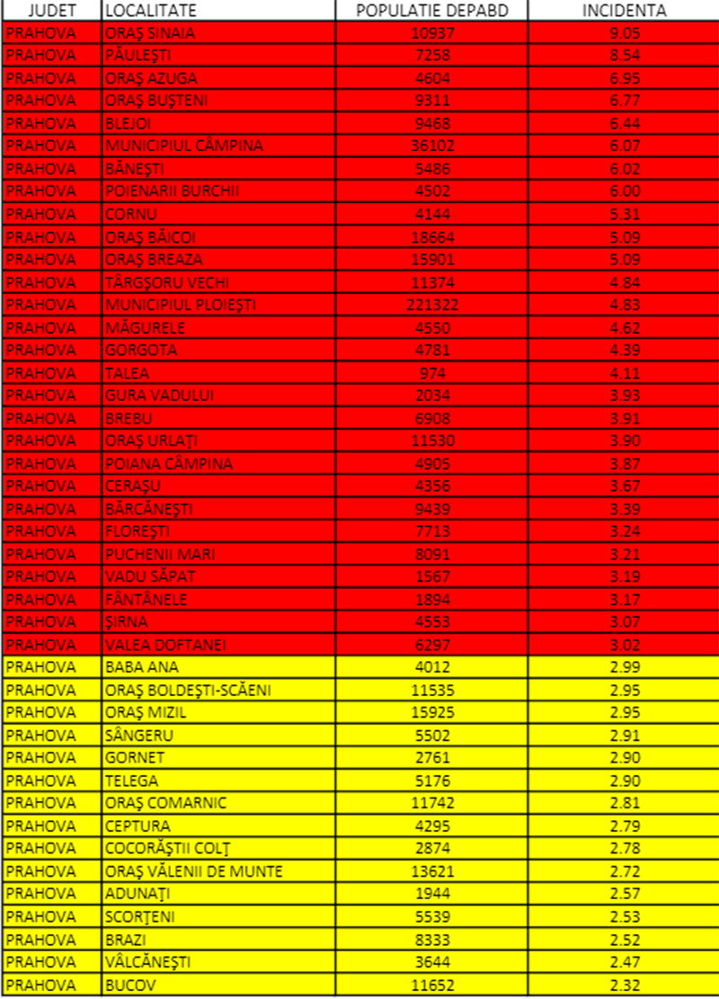Astăzi, în Prahova, rata infectărilor a urcat la 3,64 la mie. Câmpina are deja peste 6 cazuri active la 1.000 de locuitori, în timp ce municipiul Ploiești se apropie de pragul de 5 la mie.