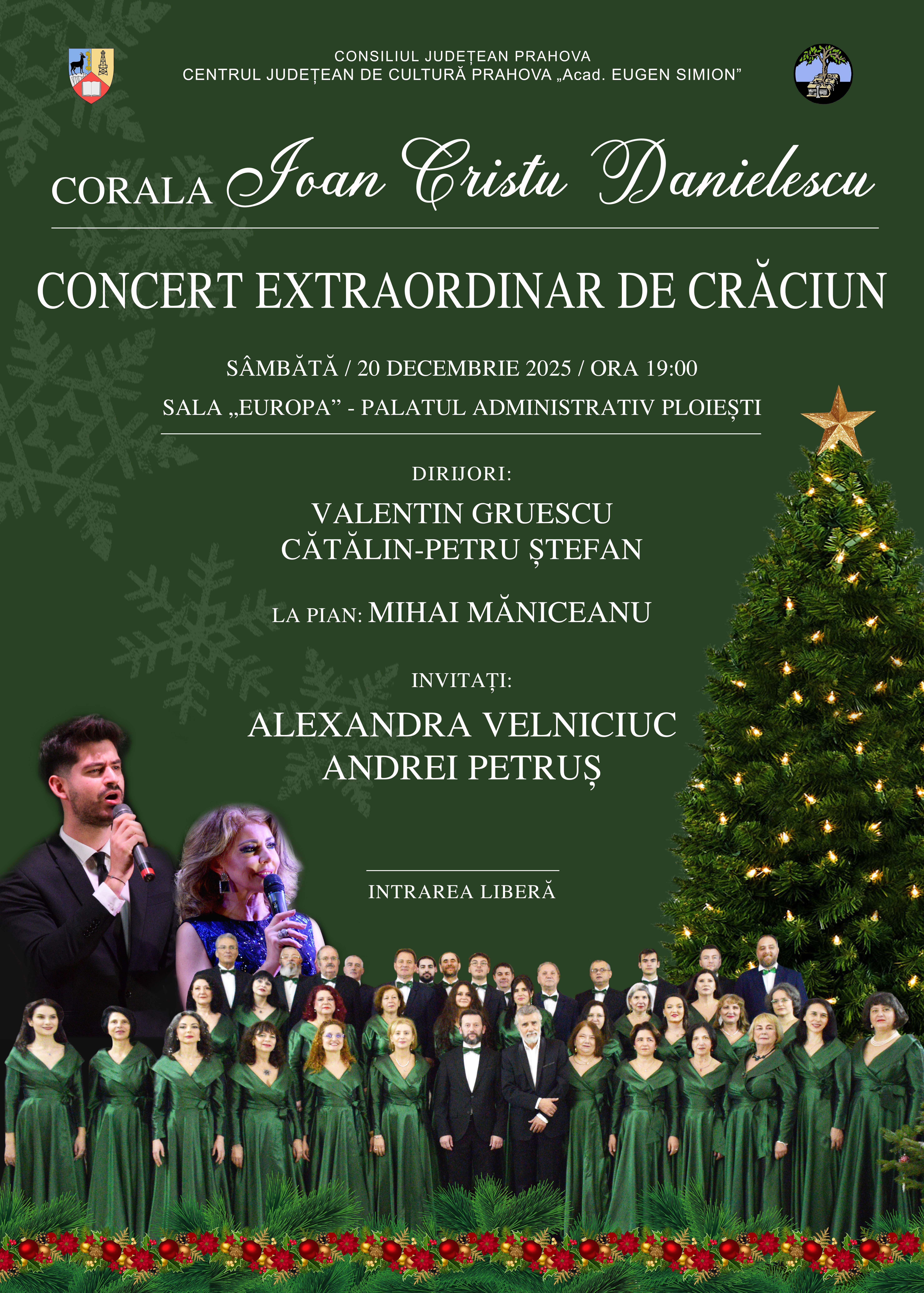Sâmbătă, 20 decembrie 2025, începând cu ora 19.00, Centrul Județean de Cultură Prahova „Acad. Eugen Simion” și Consiliul Județean Prahova vor organiza Concertul extraordinar de Crăciun, susținut de Corala „Ioan Cristu Danielescu” și invitații săi, care se va desfășura în Sala „Europa” a Palatului Administrativ din Ploiești.