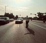 Trafic rutier dirijat pe DN 1 în urma unui accident petrecut în Comarnic. Un autoturism s-a răsturnat pe carosabil