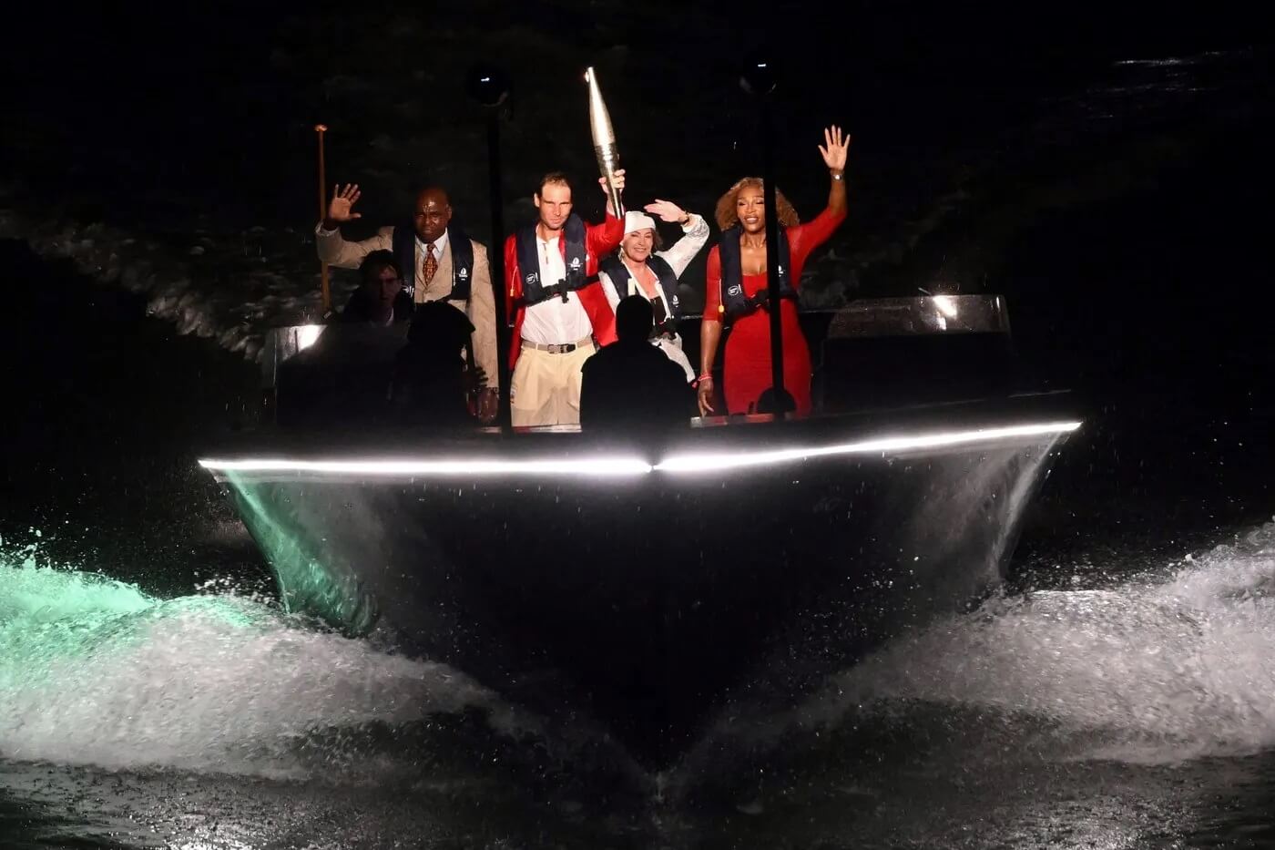 După ce parada pe Sena s-a încheiat, Rafa Nadal a plecat cu Torța Olimpică pe Sena, apoi i-a dat-o Serenei Williams, care a dat-o mai departe Nadiei Comăneci, iar fosta mare gimnastă lui Carl Lewis. Apoi, Fosta atletă Marie-José Perec și judoka Teddy Riner, ultimii purtători ai torței a căror identitate a fost ținută secretă, au aprins împreună flacăra olimpică în Jardins des Tuileries din Paris vineri seara.