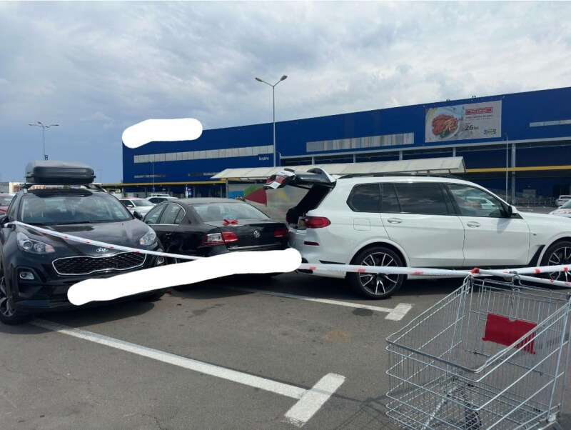 FOTO. Incident grav în parcarea unui centru comercial. O femeie a fost rănită grav după ce a fost prinsă sub propria mașină
