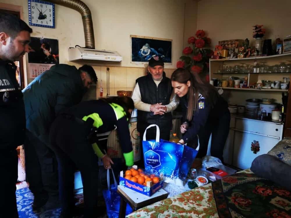 Polițiștii s-au gândit să aducă puțină bucurie în sufletul omului, în prag de sărbători, dăruindu-i alimentele necesare unei mese pentru a sărbători Crăciunul așa cum se cuvine.