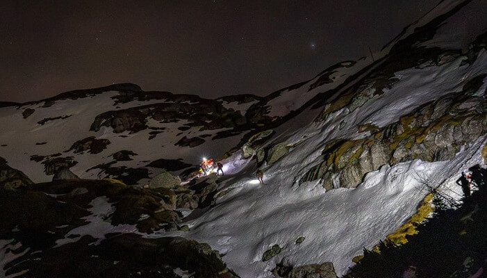 Când am văzut luminile salvamontului sus pe creastă.