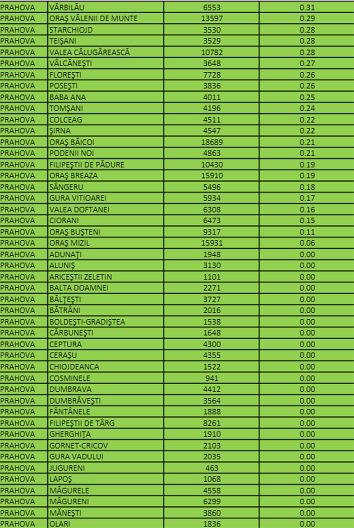 La Ploiești, incidența este de 0,38 la mie, iar la Câmpina este de 0,44 la mie.