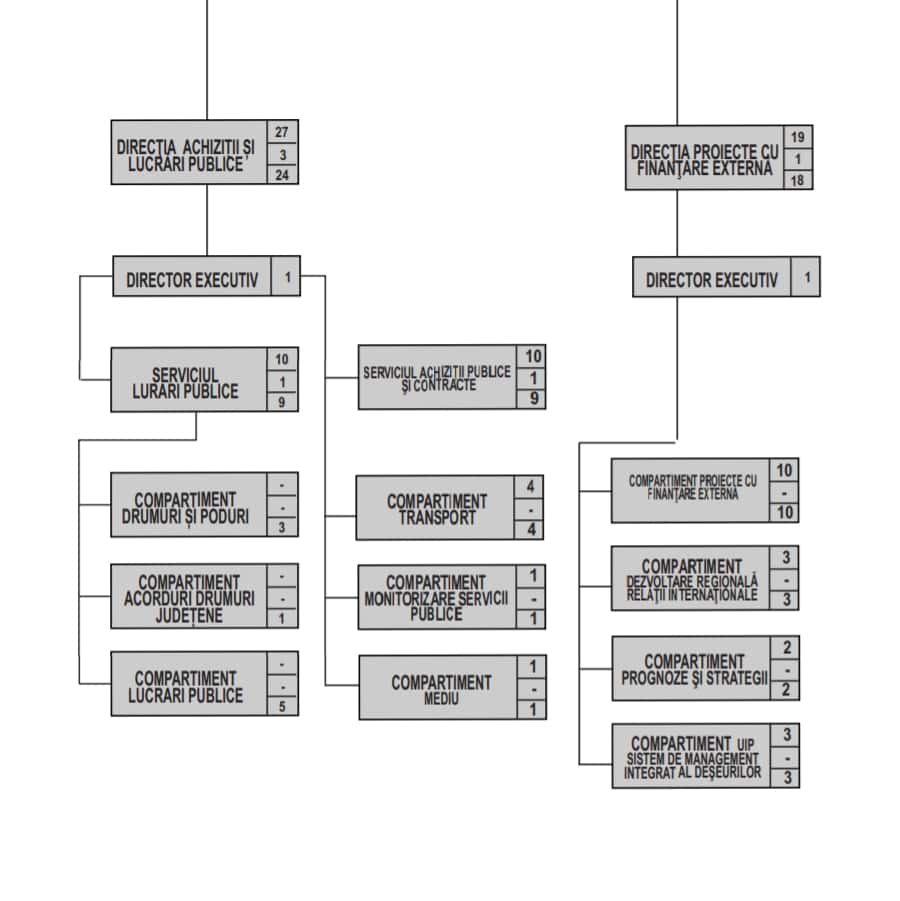 Iată ce prevede documentul oficial: "1. Reorganizarea Direcției Tehnice și a Direcției Servicii și Achiziții Publice și înființarea Direcției Achiziții și Lucrări Publice cu un număr de 27 de posturi cu următoarea structură : Serviciul achiziții publice si contracte, Compartiment transport, Compartiment monitorizare servicii publice , Compartiment mediu, Serviciu lucrări publice care are în componență Compartimentul drumuri si poduri, Compartimentul acorduri drumuri judetene si Compartimentul lucrări publice.