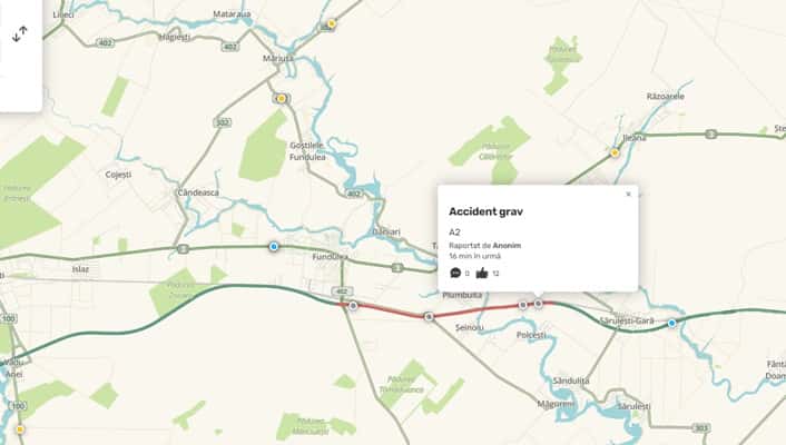 „Pe autostrada A 2 București-Constanța, localitatea Săcele, județul Călărași, s-a produs un accident rutier în care au fost implicate 8 autovehicule, la kilometrul 43, pe sensul de mers către litoral. Din primele verificări nu au rezultat victime. Circulația rutieră este oprită pe ambele benzi ale sensului de mers către Constanța, desfășurându-se doar pe banda de urgență, valorile de trafic fiind în creștere.