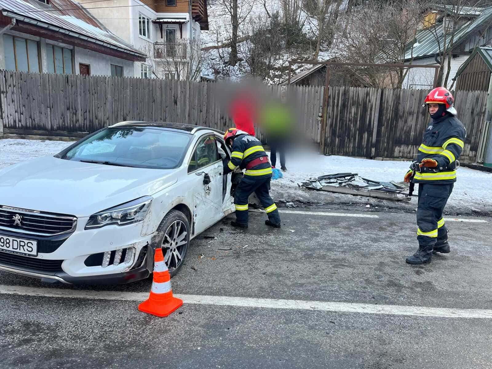 Accident rutier în comuna Aninoasa. Unul dintre autoturismele implicate a luat foc