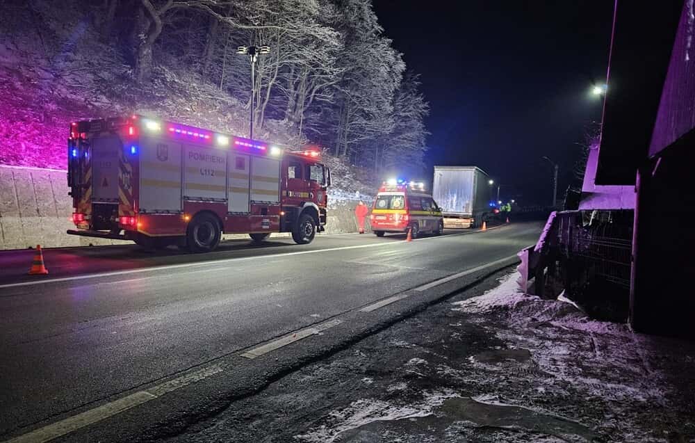 Un TIR care circula azi-noapte pe DN1 a lovit parapetul de beton de pe marginea drumului. Accidentul s-a produs în Comarnic, în zona cartierului Posada.