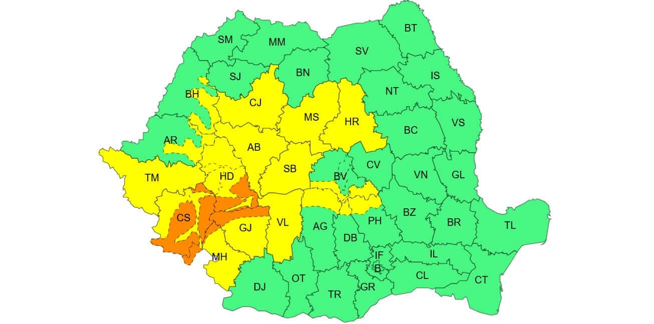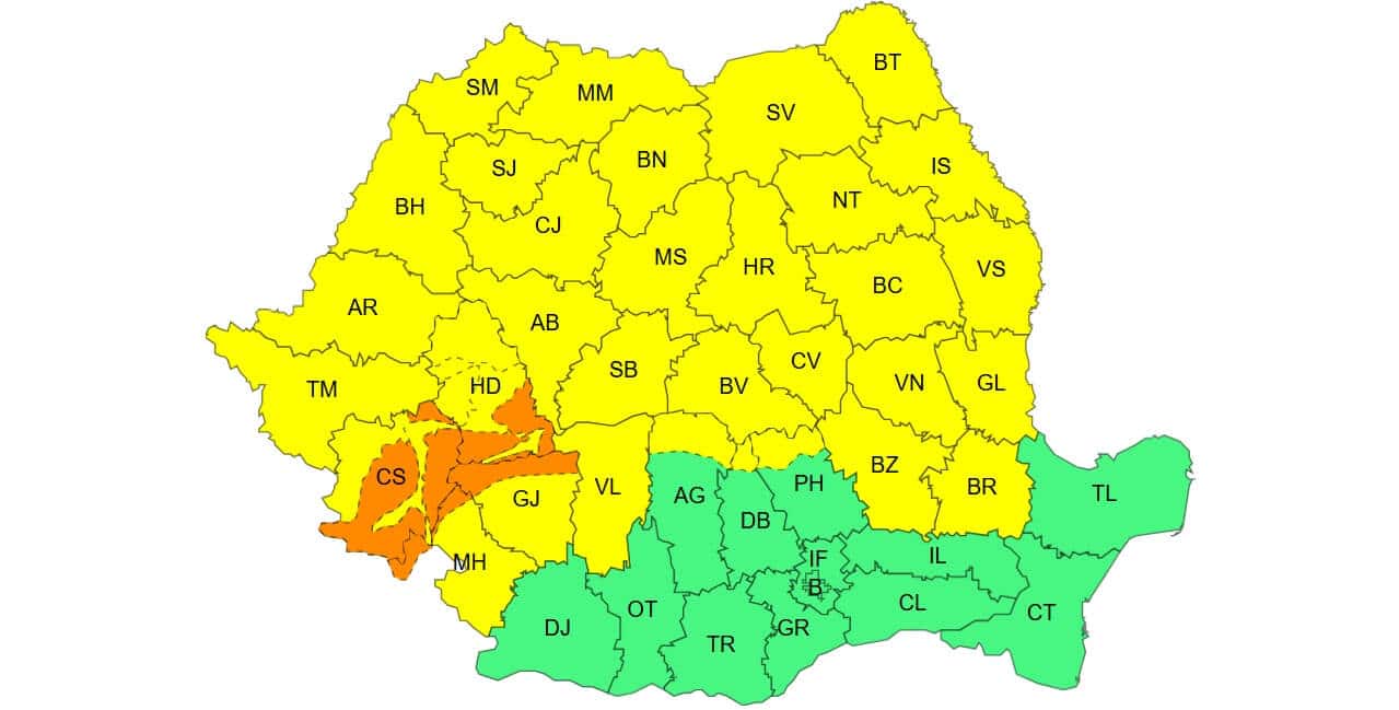 Un COD GALBEN este valabil în intervalul 04 ianuarie, ora 10:00 – 05 ianuarie, ora 10:00