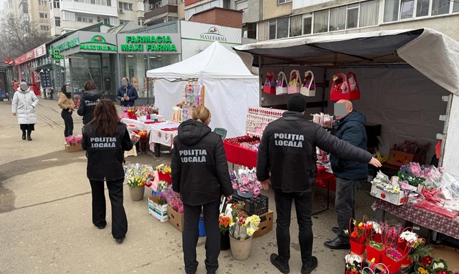 Poliția Locală Ploiești a desfășurat, în perioada 27 februarie - 1 martie 2026, acțiuni de control pentru verificarea legalității comerțului cu mărțișoare, flori și suveniruri în spațiile publice, precum și a respectării amplasamentelor stabilite de municipalitate.