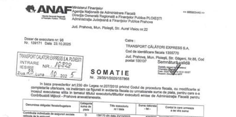 Tot liberalul este cel care a anunțat, acum, că ANAF a demarat procedura de executare silită, după ce la sediul societății a ajuns o somație în acest sens.