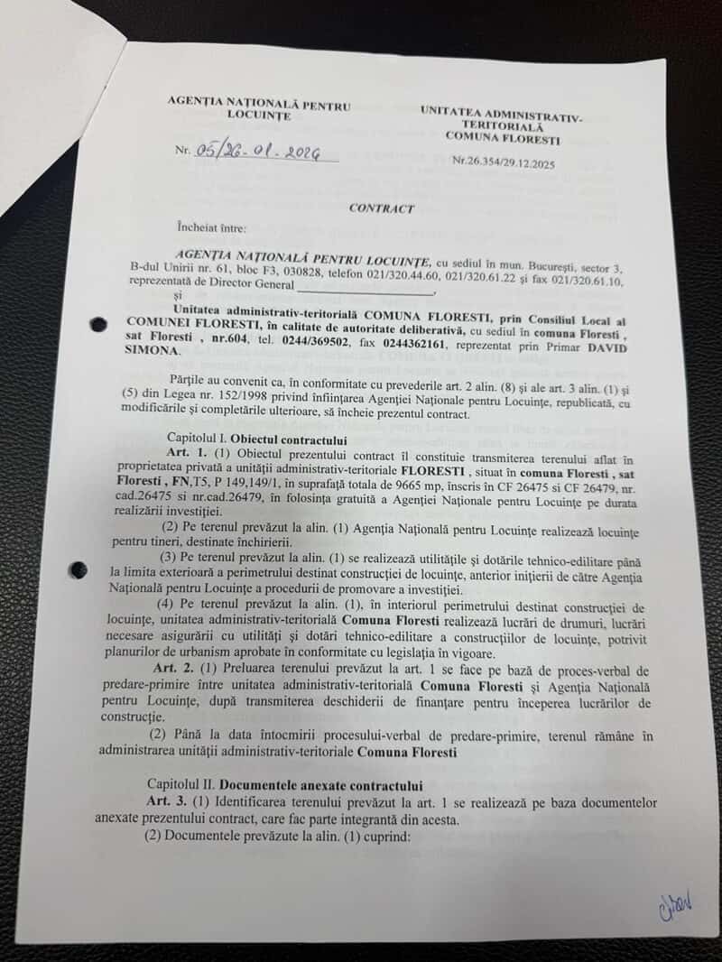 Am primit contractul semnat între Primărie și Agenția Națională pentru Locuințe, plus anexa cu propunerea de construire de apartamente pentru tineri.