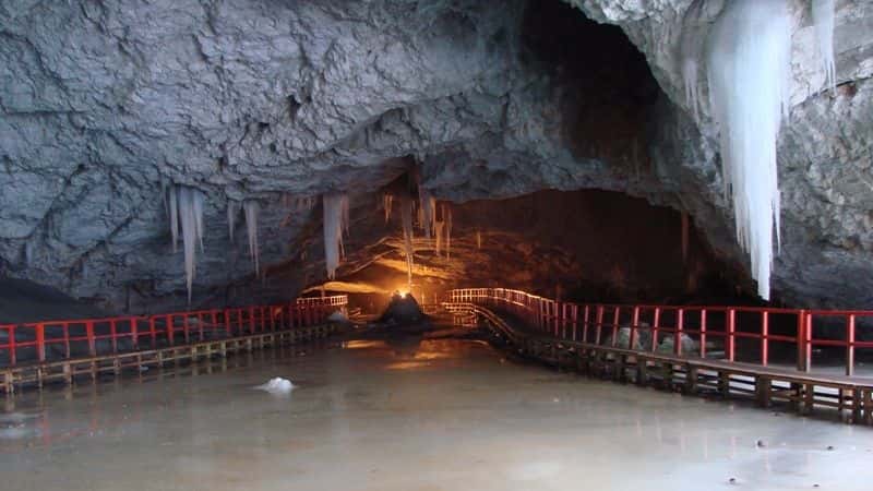 Blocul de gheață din peșteră are un volum de aproximativ 100.000 de metri cubi și o vechime estimată la 13.000 de ani, fiind cel mai mare și mai vechi bloc subteran de gheață.