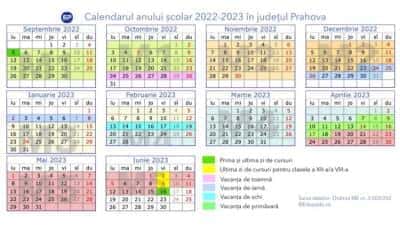 Anul şcolar debutează pe 5 septembrie, iar cursurile se vor încheia pentru majoritatea elevilor pe 16 iunie. Excepţie fac clasele a XII-a din învăţământul de zi, respectiv a XIII-a seral și frecvență redusă, pentru care anul școlar va avea o durată de 34 de săptămâni, iar cursurile se vor încheia la data de 2 iunie 2023, dar şi clasa a VIII-a, unde cursurile se vor încheia pe 9 iunie, conform calendarului anului şcolar 2022-2023 aprobat de Ministerul Educaţiei. De asemenea, pentru clasele din învățământul liceal, filiera tehnologică şi cele din învățământul profesional, anul școlar va avea o durată de 37 de săptămâni, încheindu-se pe 23 iunie.