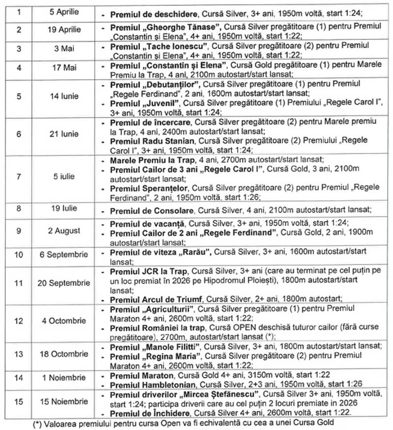 Proiectul privind calendarul curselor de trap, în anul 2026, pe Hipodromul Ploiești