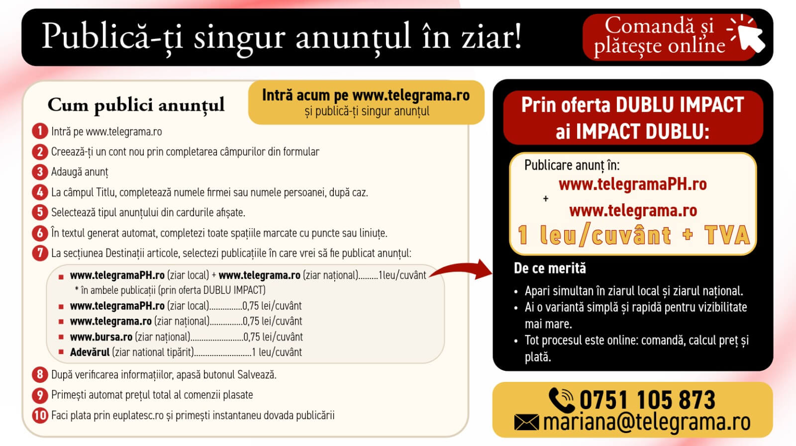 Proiectul deciziei de emitere a avizului de mediu şi motivele care o fundamentează pot fi consultate la sediul DJ M Prahova sau pe site-ul: https://anmap.gov.ro, email: office@djmph.anmap.gov.ro , în termen de 10 zile de la data prezentului anunț.