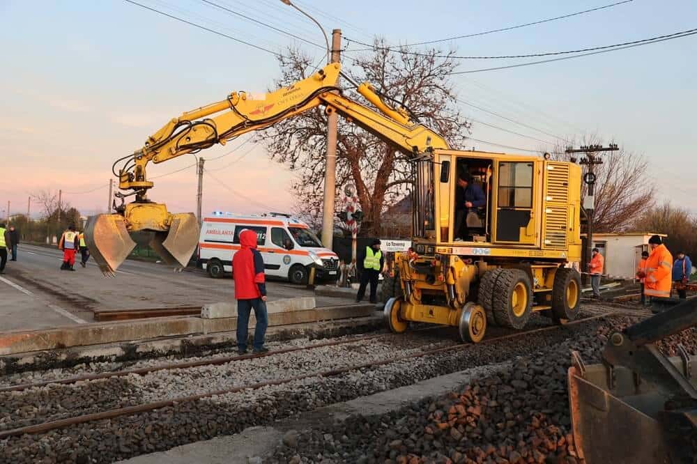 „În această dimineață, de la ora 7:00, echipele CFR au reluat operațiunile la trecerea la nivel cu calea ferată de la Movila Vulpii, unde se lucrează simultan pe toate fronturile deschise. Șapa turnată ieri s-a întărit complet, permițând trecerea la etapa următoare: așezarea și stabilizarea prismei de piatră spartă în structura căii ferate.