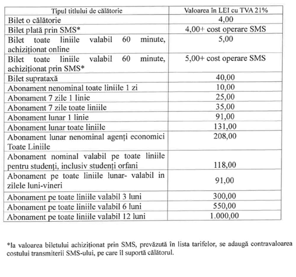 Prin același proiect au fost introduse noi tipuri de abonamente. Este vorba despre cele valabile de luni până vineri, pe toate traseele, și despre abonamentele cu valabilitate pe toate traseele, timp de trei, șase ori 12 luni, care vor costa până la 1.000 de lei.