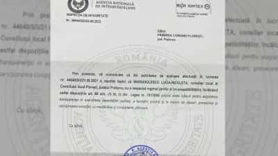 Primăria Floreşti a primit zilele acestea o adresă oficială din partea ANI, prin care instituţia e anunţată că "Marghiolescu Lucia Nicoleta a fost declarată incompatibilă pentru funcția de Consilier Local în Consiliul Local Florești". Conform Agenţiei Naţionale de Integritate, aceasta a încălcat dispoziţiile art. 88 alin. (1) lit. c) din Legea nr. 161/2003, privind unele măsuri pentru asigurarea transparenţei în exercitarea demnităţilor publice, a funcţiilor publice şi în mediul de afaceri, prevenirea şi sancţionarea corupţiei, cu modificările şi completările ulterioare.