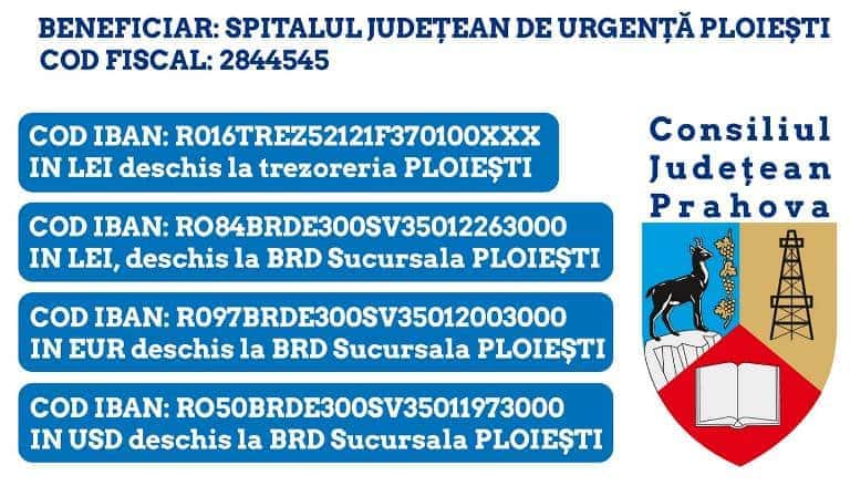 Mai multe conturi au fost deschise pentru cei care doresc să facă donații către Spitalul Județean de Urgență Ploiești. Președintele CJ Prahova, Bogdan Toader, a anunțat că au existat deja semnale de la oameni de afaceri și cetățeni din județ care doresc să contribuie pentru achiziționarea de materiale sanitare necesare medicilor și pacienților.