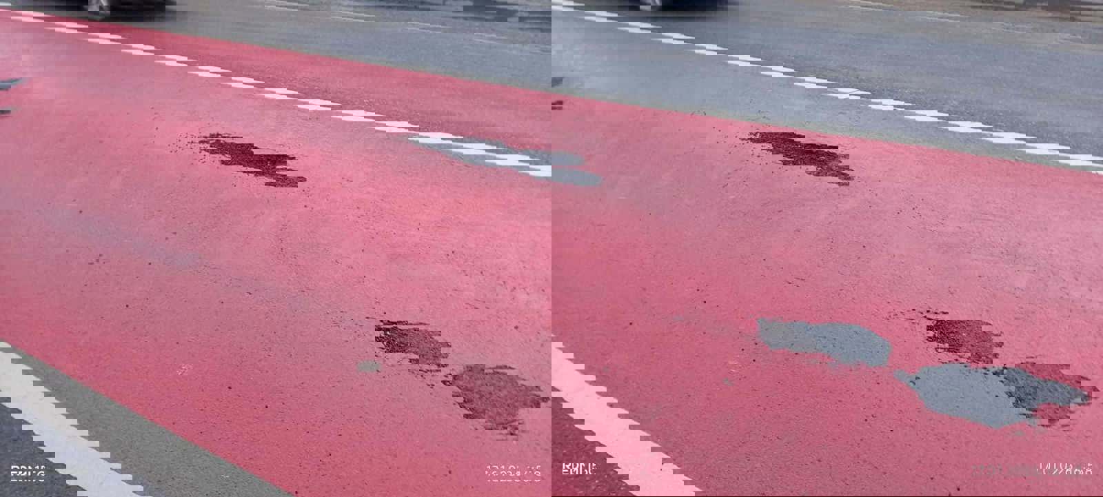 După recentele ninsori, pe DN 1, la Poiana Țapului, au apărut gropi în asfalt.