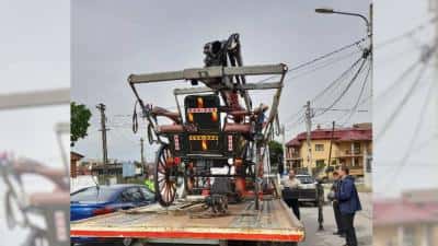 Aşa că trăsurile au fost ridicate cu o platformă, exact cum se procecedează în cazul maşinilor parcate neregulamentar, şi luate.