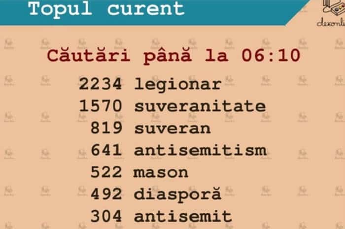 Cuvântul „legionar” a fost cel mai căutat pe dexonline în noaptea de 24 spre 25 noiembrie, după anunţarea rezultatelor parţiale din primul tur al alegerilor prezidenţiale.