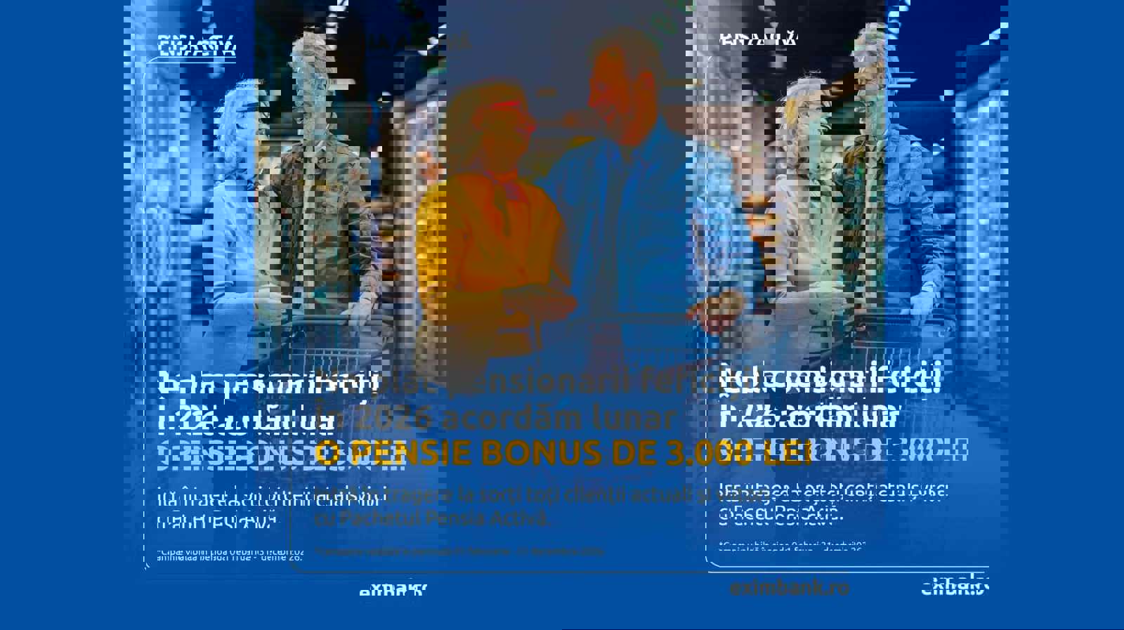 Recomandările pot fi făcute în perioada 02 februarie – 30 aprilie 2026. Campania este disponibilă pentru clienții Exim Banca Românească ce dețin un cont curent activ și încasează sau urmează să încaseze pensia în cont de la Casa Națională de Pensii Publice sau de la Casa Sectorială de Pensii a Ministerului Apărării Naționale.