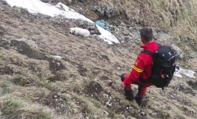 {showtime 345}După aproape 3 ore de eforturi, salvatorii montani au reuşit să scoată «victima» din prăpastie şi au predat-o cu bine stăpânilor”, au relatat salvamontiști după intervenția de duminică.