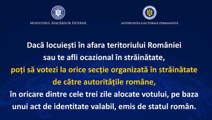 „Pentru a vota în străinătate la alegerile prezidențiale este necesar unul dintre următoarele acte de identitate emise de statul român, cu condiția de a fi valabil în ziua votării: