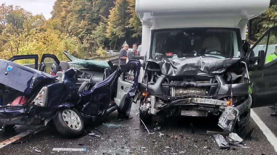 O autorulotă și un autoturism au intrat în coliziune pe DN 1, la Posada. Așa cum reiese din imagini, impactul a fost unul violent.