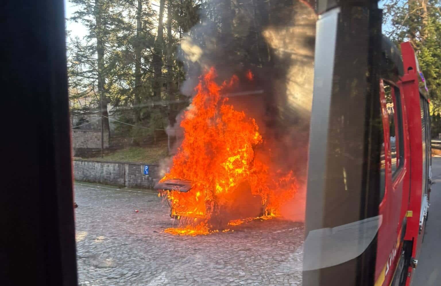 Pompierii militari din cadrul Detașamentului Sinaia au acționat, joi dimineață, pentru lichidarea unui incendiu produs la o autoutilitară staționată într-o parcare din apropierea Castelului Peleș.