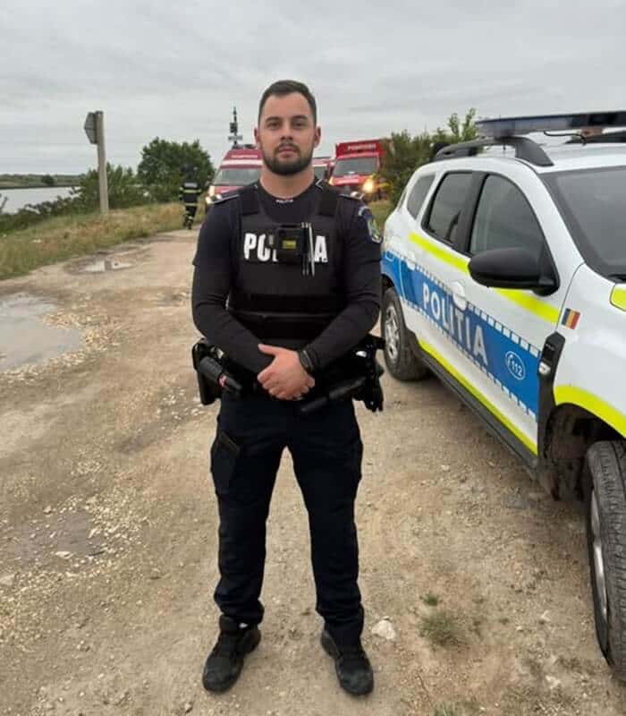 Colegul nostru, agent de poliție Lucian Stamate, din cadrul Poliției municipiului Medgidia - Biroul de Ordine și Siguranță Publică, promoția aprilie 2023, a sărit în apă și a salvat viața micuțului.