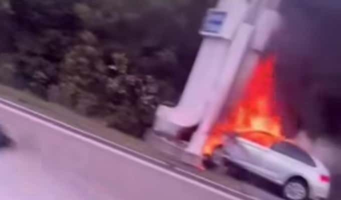 Un accident cumplit a avut loc luni dimineață, pe DN1, în jurul orei 8.30. Un șofer a intrat cu mașina într-o bornă de pe marginea drumului, iar mașina a luat foc imediat. Din informațiile de până acum, conducătorul auto ar fi rămas încarcerat.