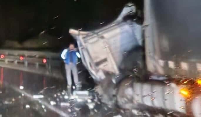 Potrivit unor surse, un șofer de 73 de ani ar fi pierdut controlul direcției de deplasare din cauza ca nu ar fi redus viteză pentru a o adapta la condițiile de carosabil umed. Vehicul ar fi ajuns pe contrasens, intrând în coliziune cu un alt TIR, condus de un tânăr de 31 de ani, al doilea șofer fiind rănit și transportat la spital, pentru îngrijiri medicale.