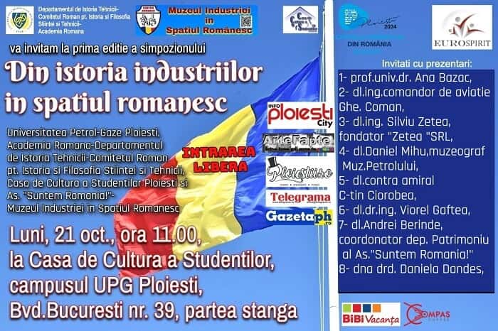 Asociaţia Cultural Educativã pentru Protejarea şi Promovarea Patrimoniului Tehnic, Ştiinţific şi Istoric “Suntem România!”- Muzeul Industriei în Spaţiul Românesc invită pe toţi cei interesaţi la simpozionul “Din istoria industriilor în spaţiul românesc”.