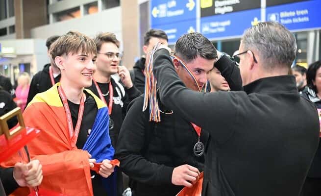 Familii, susținători și reprezentanți ai administrației locale s-au strâns azi-noapte, pe Aeroportul Otopeni, pentru a-i întâmpina pe membrii echipei Eastern Foxes, la revenirea de la Campionatul Mondial de Robotică din SUA.