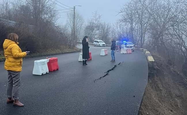 CÂMPINA. O porțiune șosea s-a prăbușit, la câteva ore după închiderea circulației în zona Câmpinița