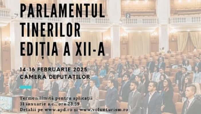 Asociația Clubul Român pentru Volunturism și Asociatia Pro Democraţia lansează invitaţia la Parlamentul Tinerilor, ediţia a XII-a, o simulare organizată la Palatul Parlamentului, între 14-16 februarie 2025.