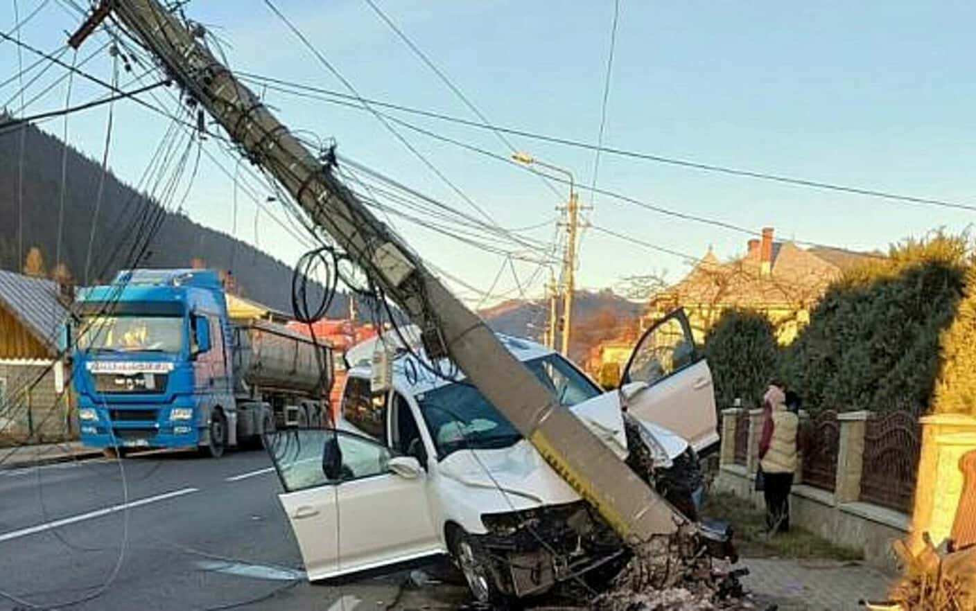 Potrivit acestora, un autoturism a intrat într-un stâlp de beton, care susţinea reţeaua de electricitate.