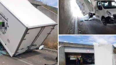 Un șofer a distrus dubița pe care o conducea după ce a încercat să treacă pe sub pasajul de pe strada Constituției din Arad, fără să țină cont că înălţimea maşinii sale este prea mare.