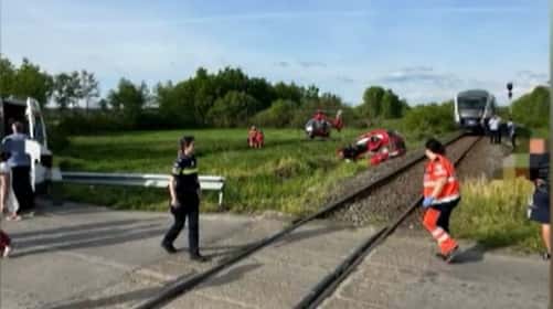 Accident înfiorător la o trecere la nivel cu calea ferată din județul Timiș. Doi soți de 63, respectiv 62 de ani, au murit după ce mașina le-a fost spulberată de un tren cu 15 pasageri la bord.