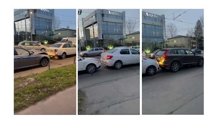 Accidentul s-a petrecut în intersecția semaforizată cu str. Malu Roșu, pe sensul spre Gara de Vest. Un șofer care ar fi încercat să treacă pe culoarea galbenă a semaforului nu a mai reușit să frâneze la timp și a lovit un autoturism care stătea în coloană, proiectându-l în față. Alte două mașini au fost proiectate, apoi, una în cealaltă.