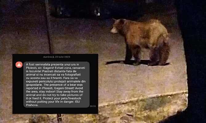 Ploieștenii au fost avertizați, în noaptea de sâmbătă spre duminică, prin RO-ALERT, că prezența unui urs a fost semnalată în zona de nord a municipiului.