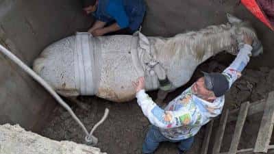 Pompierii din cadrul Detașamentului 1 Ploiești au fost solicitați să intervină pentru salvarea unui cal, o iapă gestantă, care căzuse într-o fosă septică betonată.