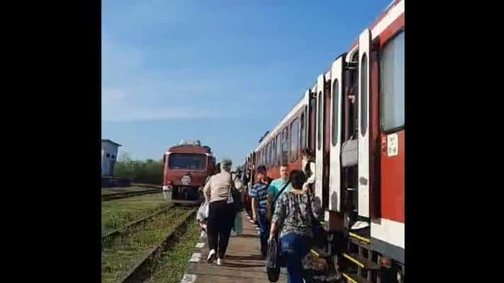 Un cititor a transmis, la redacție, imagini surprinse marți după-amiază, pe traseul Ploiești Sud - Măneciu, în timpul unei curse Transferoviar Călători. Zeci de oameni, inclusiv persoane în vârstă, au fost date jos din tren și mutate în altă garnitură.