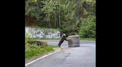 Ursul a fost filmat ieșind pe șosea și mutând unul dintre baloții de paie amplasați într-o curbă de pe traseul stabilit pentru raliu, într-un punct din zona Hotel Pârâul Capra.