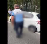 Momentul imobilizării șoferului a fost filmat de un polițist, aflat în timpul liber, care a ajutat și la blocarea acestuia în trafic.