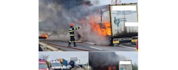 Trafic oprit pe A1 București - Pitești, din cauza unui TIR care a luat foc în mers